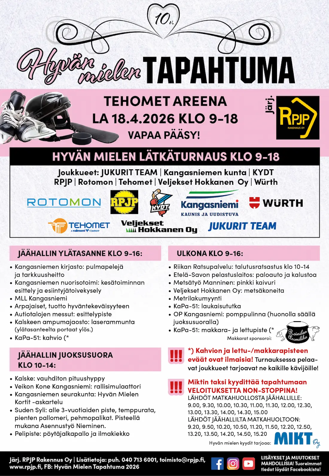 Suosittu koko perheen Hyvän Mielen Tapahtuma järjestetään jo 10. kerran! Juhlavuoden tapahtumaa vietetään tuttuun tapaan Tehomet Areenalla.